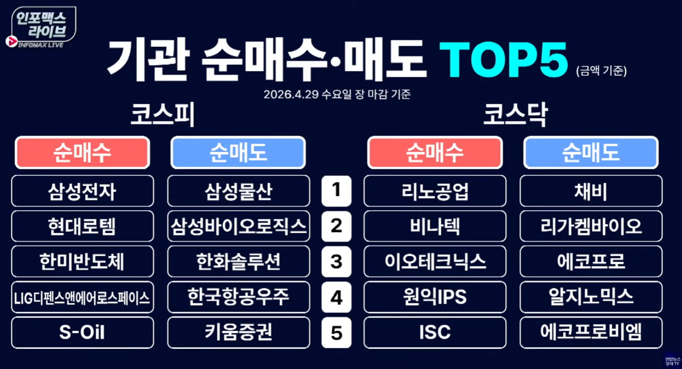 기관은 코스피에서 반도체, 방산, 화학을 매수